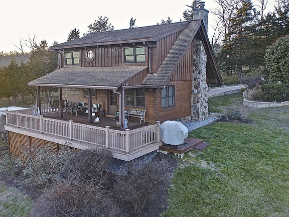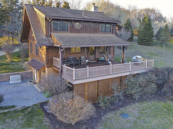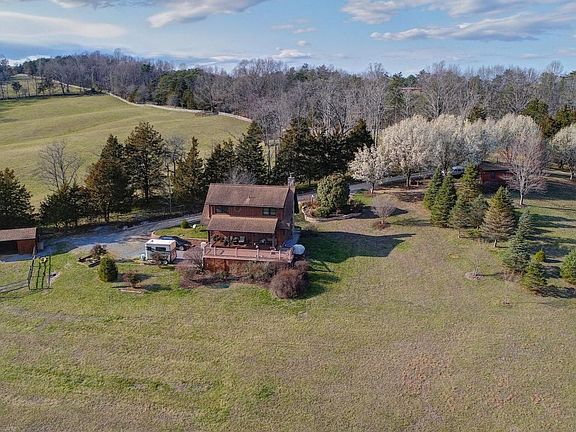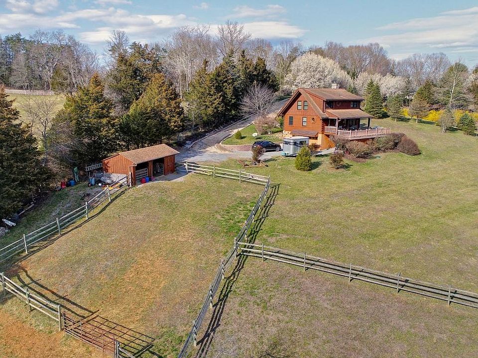 One of the most stunning views in Rockbridge County awaits you from this custom hand-hewn log and frame home. Covered porch opens to an expansive deck from which you view the ever-changing majestic Blue Ridge Mtns. In the adjacent pasture and paddocks, watch your own horses quietly grazing. Enjoy the warmth of the stone fireplace, the wood interior, and the openness of the cathedral ceiling.