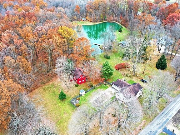 Don't miss out on the huge opportunities available with this sprawling, four-bedroom Leavittsburg split level home! This move-in-ready residence brings big-time living space and a sizeable yard that includes a fenced in pool area and additional outbuilding with two floors of potential shop or converted living space. The entire residence overlooks a scenic neighboring pond, filled with wildlife. Passing through the covered patio of the side entrance, the foyer opens to reveal gorgeous hardwood flooring that fills much of the home. Matching wood trim work follows along with doorways, case work and built-in cabinetry that's found throughout the floorplan. A pair of first floor guest bedrooms are offset by a robust full bath with hidden shower and tiled flooring. Two larger bedrooms reside at the top of the upper stairway to include a handsome master suite with its own full private bath. Continuing through the first floor, a lavish kitchen boasts huge countertop space with and an inset range. A massive living room is window lined for both scenic and poolside viewing alike. Below, a carpeted family room bestows a brick hearth and flu for an additional standalone fireplace. Storage and utilities comprise the lowest floor. The ready to renovate in-ground pool will need repaired or replaced, red outbuilding must be seen to fully appreciate before you turn your dreams into reality.