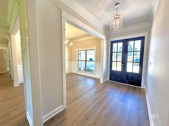 ***CLOSE OUT***LAST OPPORTUNITY TO PURCHASE A TRULAND HOME IN FOX HOLLOW***Experience the casual luxury as you enter the foyer though 8 ft Mahogany wood-stained doors. The main living areas and owner's suite have beautiful REVWOOD floors by Mohawk. The custom trim includes crown molding, board and batten wall detail, fully cased windows, designer door frames and a brick/wood fireplace surround with mantel. Open, light and bright. The layout is an entertainer's dream. The chef’s kitchen boasts beautiful cabinetry, gorgeous quartz counters, large work island, gas range with a designer hood, built in microwave and an enormous walk-in pantry. The large, covered patio and backyard are accessible from the breakfast room. The owner's suite is spacious and will accommodate a king size bed with plenty of room for side tables, chest of drawers and a sitting area. The ensuite bath has a soaking tub, tiled, zero entry shower and DUAL private closets with wood shelving. There are three additional large guest bedrooms with walk in closets and two full baths. There is plenty of storage too! This home is built to Gold Fortified specifications, has a builder warranty, smart home features including a ring doorbell and security camera. This community is golf cart accessible to Downtown Fairhope and all it offers. Home is completed and move in ready!