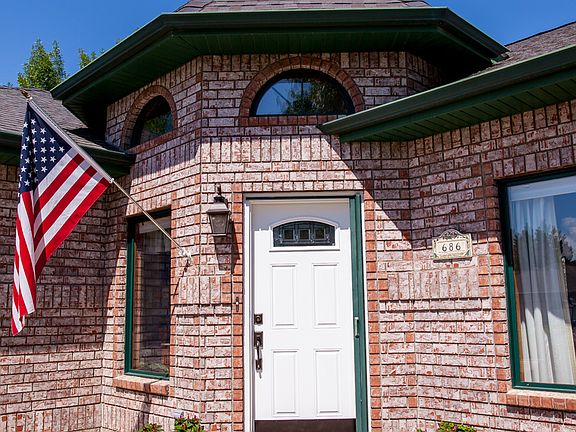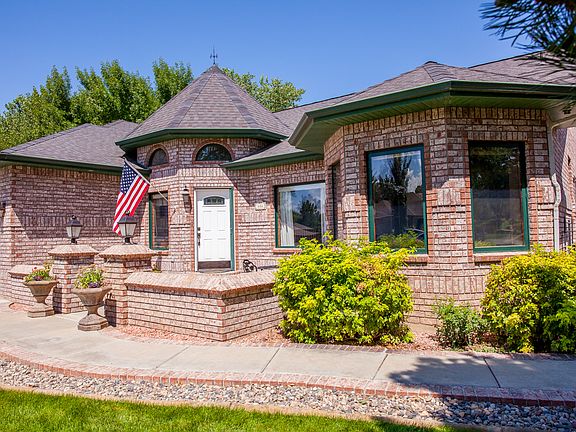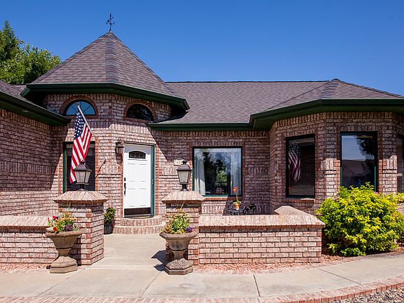 If you are looking for luxury living in a convenient location, you have found your home! Located in the upscale Moonridge Falls neighborhood in the North area of town, and tucked into beautiful, mature landscaping, this all-brick home with turreted features has a wrought-iron fence and gracious front porch. The home boasts an open floor plan, arched entries, vaulted ceilings, fresh paint, and wood-framed windows. The main floor has a large living area, a bathroom with claw-foot tub, and a bedroom that can function as library or office. The master bedroom suite has plantation blinds, mirrored sliding closets with built-in shelving and organizers, walk-in closet, and 5-piece bath including garden tub and dual vanities. The spacious kitchen has an island that seats four, gas range and convection electric oven, additional convection oven and microwave, water purifier, oak cabinets, walk-in pantry, and built-in office nook. The laundry room has a utility sink, storage cabinets, and countertops. The lower level has three bedrooms with egress windows, a large family room or game room wired for television and sound, and a theater room with built-in directional surround speakers and large screen. The house is wired for sound in two zones and has individual volume controls in each room. Air is forced heat and comes with two large evaporative coolers. A security system is already installed. The property is just as beautiful as the interior; a covered outdoor living area opens off the kitchen and features a built-in DCS rotisserie grill with food prep area, a hot tub, and is wired for both sound and television. There are mature shade trees, a garden area, and even a zipline. Automatic sprinklers with irrigation water service both the front and back yards. The yard backs to a creek and open area, accessible through a gate in the wrought iron fence. Schedule your viewing now, for this premium property is waiting to welcome you home. (HOA is $300 per year for irrigation and waterfall/trail maintenance). Although information is believed accurate, it’s not guaranteed