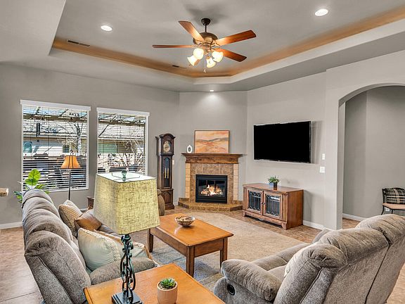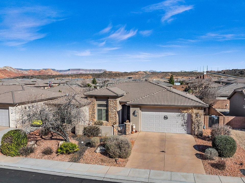 Located in the desirable Peregrine Point community in Hurricane, this spacious 2,067 sq ft home is one of the largest floor plans available. The open layout is enhanced by high ceilings, creating an airy and expansive feel throughout. The functional split floor plan features a large primary bedroom for ultimate privacy, while the guest wing offers two bedrooms and a full bathroom. The kitchen is equipped with updated appliances, perfect for meal prep and entertaining. Outside, the comfortable backyard is ideal for grow boxes, grilling, or simply relaxing and enjoying the serene surroundings. This home is the perfect blend of comfort and style!