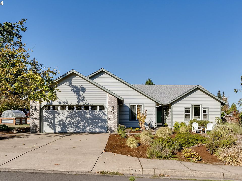 Beautifully updated contemporary nestled on a large corner lot in a desirable Thurston Hills neighborhood. This single-level home features new interior paint, a newer roof, and a newer HVAC system. A vaulted, light-filled living room offers the comfort and warmth of a gas fireplace. The lovely kitchen provides quartz countertops, stainless steel appliances, gas cooking, and maple cabinets. A spacious primary bedroom suite features vaulted ceilings, an ample walk-in closet, and walk-in shower. Relax or entertain on the covered patio overlooking the finely landscaped back yard. Gorgeous acacia floors, raised garden beds, two-car garage, gas hot water, gas furnace, central air, laundry room with washer and dryer included. Corner covered patio set up and wired for a hot tub. Close to park, shopping, highway access and more. A great opportunity!