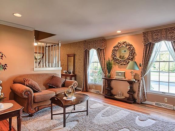 Incredible views is the backdrop to this 2 STORY home on 1 ACRE+. Circular driveway leads to home w/2car attached garage PLUS 2 car detached Blg w/electric. Brazilian hardwd flrs, L/R w/gas FP, D/R w/sliders to screened in porch, Kit w/Corian countertops, island, walk in pantry/laundry rm, bft nook w/sliders to deck. Fam Rm leads to Four Season Rm. LL game rm.