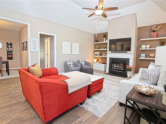 Charming one-level home nestled on a quiet cul-de-sac with stunning lake views. The open floor plan features vaulted ceilings that create a spacious, airy feel—perfect for entertaining or relaxing with family. Recent updates include all new flooring throughout, fresh interior paint, updated lighting, and a remodeled primary bathroom. The kitchen offers solid surface countertops and modern stainless appliances. Enjoy peaceful evenings on the screened-in porch, taking in views of the serene lake and local wildlife. A new HVAC system was installed in 2020 for year-round comfort. Ideally located close to shopping, restaurants, and major highways for easy access to everything you need.