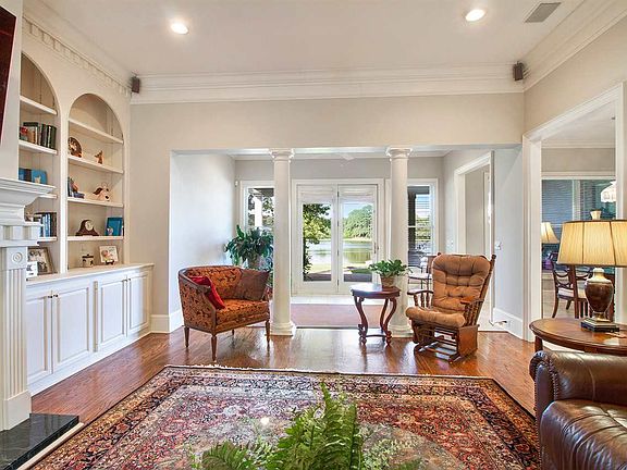 Custom Built, Lakefront Home with Deep Back Porch and Patio. Waterfront with Stone Patio and Fire-pit at Water's Edge and White Gazebo Over-Looking Beautiful Lake; Steps down to Boat Dock. Designed for Entertaining; Professional-Style Kitchen offers Large Granite Island with Gas Stove and Ice-maker. Awesome Laundry Room with enormous Storage, Sink and Separate Walk in Pantry. Huge Master Suite and Great Water Views. Wood floors in Foyer, Great room and Huge Dining Room with Soaring, Vaulted Ceiling and Eyebrow Windows. Waterfront Views from almost everywhere! Wood Floors and French Doors that open to the back. ALL THIS ON ONE LEVEL - EXCEPT for Bonus Room over garage. Don't miss fantastic drone footage and 3D Tour!