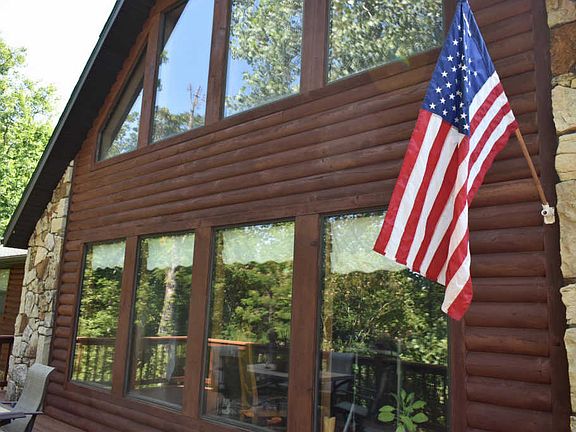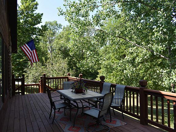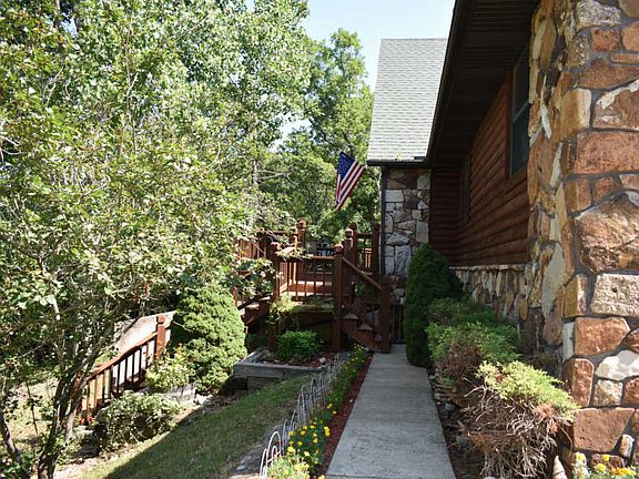 Prepare to be impressed by this log sided 3 bedroom, 3 bath home with 3 Living Rooms that also has a brand new roof ! Located on 5 m/l acres this impressive home features hardwood flooring, rock fireplaces, a game room, wet bar, and 2 car garage. Perfect for a growing family and conveniently located just minutes to Branson and both Taneycomo and Bull Shoals Lake. There is room to entertain on the spacious deck or on either of the 2 large patio spaces. The carport and kitchen appliances (including fridge) convey. The loft bdrm does not have a closet. A 1 year HSA home warranty will be provided to buyer.