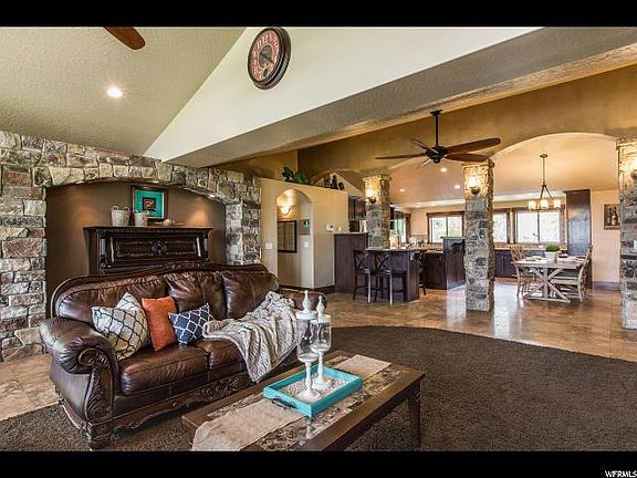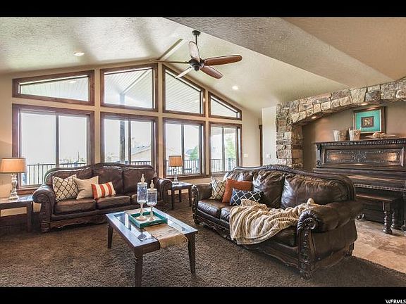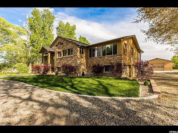 This home sits on a beautiful 1 acre lot with a wonderful private, outdoor feel due to the many trees on the property and the great views of the mountain-lined Utah Valley. There are apple and apricot trees that provide beautiful blossoms in the spring and delicious fresh fruit throughout the summer. A convenient large shop resides on the property and can be used for a variety of purposes from being a workshop to a craft or storage area. Quality stonework and lighting throughout the home will greet guests and residents with a welcoming atmosphere that is unique to this property. The kitchen, bathrooms, laundry room, and deck all have beautiful and impressive granite countertops. The Master bedroom has so much to offer in comfort and luxury from the spacious walk-in closet to the high-end jetted tub and steamer in the shower. Additional convenient and admirable features of this home include the large and multi-functional laundry room with plenty of counter and storage space, a theater-like entertainment center in the basement, a sound system that runs throughout the house, and a wood stove with a full stone mantle in the kitchen. These features, as well as the spacious floor plan, and covered porch allow for a variety of entertaining opportunities all year round. Come see how these and many other desirable qualities of this home make it an opportunity that you will not want to miss!
