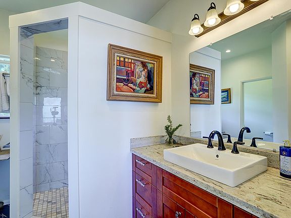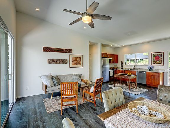 If you're seeking expansive views, serene surroundings, and cool weather on acreage, then you'll love 686 Waiakoa Road, nestled in the charming Waiakoa area of Kula. This newly built home, completed in 2019, offers everything you desire. Set on over 2 acres, this custom contemporary-designed 2-bedroom, 2-bath home features a sprawling deck with breathtaking vistas. Every room offers stunning views, complemented by high-end finishes, including luxury vinyl wood flooring, natural stone, marble, ceramic tile, and granite. The soaring ceilings create a spacious feel beyond the 984 square feet. The carport under the home is generously sized, with 20-foot high ceilings, making it capable of accommodating multiple vehicles, or even a boat. Multiple additional building sites offer the potential for constructing a larger dwelling, enhancing the property’s versatility. Additionally, a charming tiny home serves as a perfect guest house, art studio, or agricultural office. The land is cleared and ready for your next agricultural project or compound. This property is a must-see. Picture yourself on the deck, enjoying Kula's cool temperatures, watching baby goats frolic in the distance, listening to pheasants call to one another, and birds singing as you capture amazing sunsets. Sound enticing? Call your favorite Realtor to set up a showing today! ***OPEN HOUSE SAT 6/8 11-3****