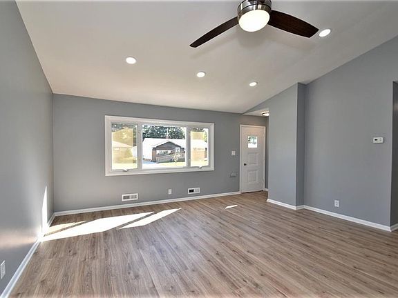 Completely updated ranch home in Parma Heights is move in ready! As you enter the home through the front door you will notice the beautiful luxury vinyl floors and neutral paint throughout. The spacious living room has plenty of sunlight with vaulted ceiling and recessed lighting. The formal dining room is perfect for entertaining allowing access to backyard and providing the space to host your next gathering with family and friends. You will be impressed by the elegantly updated kitchen. The kitchen provides brand new stainless steel appliances, gorgeous granite countertops complimenting the backsplash and new cabinets. This ranch style home has three bedrooms with refinished hardwood flooring and plenty of closet space for your storage needs. Both bathrooms on the 1st floor have been completely updated. The full bathroom on the main floor has been updated with new tile flooring, bathtub and vanity. The steps leading to the basement are freshly carpeted. The basement provides a rec room with new luxury vinyl flooring, a laundry area and an extra bonus room that can be used for a bedroom, office or extra storage space. The bathroom in the basement has been nicely updated with a new shower and vanity. The backyard provides an area for a garden, two car garage and newer driveway. This home is a must see!