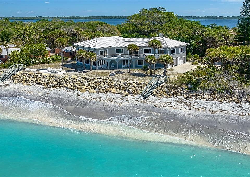 Beach Front Oasis perched in harmony with nature awaits the Buyer looking for amazing views and sunsets over the Gulf of Mexico. This two story home with elevator was significantly updated with new Roof 2022, painted inside and outside, hurricane rated windows, recently refortified riprap on the property's bluff, privacy wall and entrance gate complete the Estate. This home has been impeccably maintained. The Master bedroom rests on the second floor with large walk in closet, jetted tub and wood burning fireplace to relish the laidback luxury and Island lifestyle that Manasota Key is know for, savoy the stunning sunset views from the upstairs covered patio, two bedroom on the lower level and two bedrooms on the second floor allow for family and friends to enjoy this home for easy living and entertaining. Near restaurants, shopping and Golf Courses.