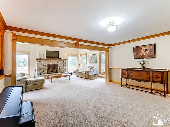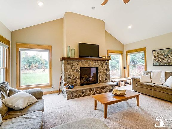 IDA SCHOOLS, Privacy and Relaxation awaits you in this move in ready home. There is no shortage of space with 3 bedrooms, and a possible 4th bedroom being used as a workout space. Enjoy a cozy night in the vaulted great room with a hand laid stone fireplace with hand carved oak mantel. The Coffered ceiling library with built in book case is the perfect place to work from home. This home boasts custom milled wood throughout, and has a wood shop above the attached 3.5 car garage. Updates include new siding, roof, air conditioner, furnace, and hot water heater in 2017/18 as well as a freshly painted second floor and foyer. Don't let this one pass you by. *Contingent upon seller finding suitable housing*