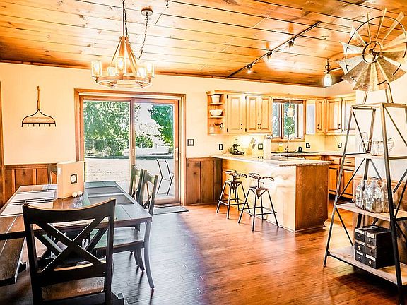 This is your change to own a mini horse farm with two houses(one ranch, and one log cabin), 4 stall barn with hay loft, insulated tack room, hay storage, and electric. Small arena, pasture with heated automatic waterer, greenhouse, large chicken coop, small shed, plus a 4 bedroom 2 bath housend a 1 bed 1 bath house with a game room and with a long covered porch currently used as a profitable AirBnB. LOTS of updates including newer roof, septic, granite counters, stainless appliances, hardwood floors, and newer master bath.