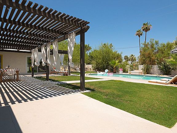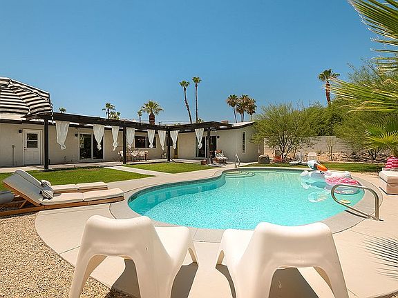 House available for showing. Updated will pay MAX 3% commission to buyers agent. Located on a quiet cul-de-sac street, this mid century modern gem has all the contemporary updates you're looking for in a weekend getaway or a full time residence. The home was fully remodeled in 2016 as a flip with flip style finishes - we have since made many improvements turning it into a home. Pictures are over a year old and do not reflect current upgrades such as all new matte black Bosch kitchen appliances, new brass kitchen pulls, matte black door handles, new bathroom mirrors and light fixtures, new matte black ceiling fan and so much more. You will especially enjoy the new pool heater and pentair filter upgraded in 2018. Home can be sold fully furnished / turnkey so you can enjoy immediately. You will love the huge master bedroom that looks out to the pool with an ensuite clawfoot tub! The large in-ground pool and backyard offers tons of space to entertain without ever seeing neighbors. For showings or inquiries please send an email to Chichideaway@gmail.com . No phone calls will be answered. About the area: There is local access to hiking and mountain biking in the wash and mountains surrounding the Cove for miles that go miles and miles. The backyard has great views of the mountains and valley; it is extremely quiet and private from all neighbors--no tan lines needed. A drainage easement behind the house gives and extra 12ft-15ft of buffer zone with some trees, between the neighbors across the backyard, which are also at a slightly lower elevation, adding to the privacy. You can pay over $400/sf just a couple miles away, but you do not have this quiet, and peaceful, and central location. Cat City, is only a short drive to Palm Springs one direction, or the other way to Palm Desert--everything is close by. Target and Trader Joe's are down the street.