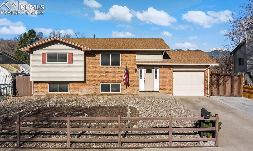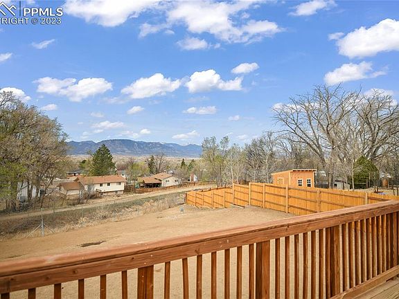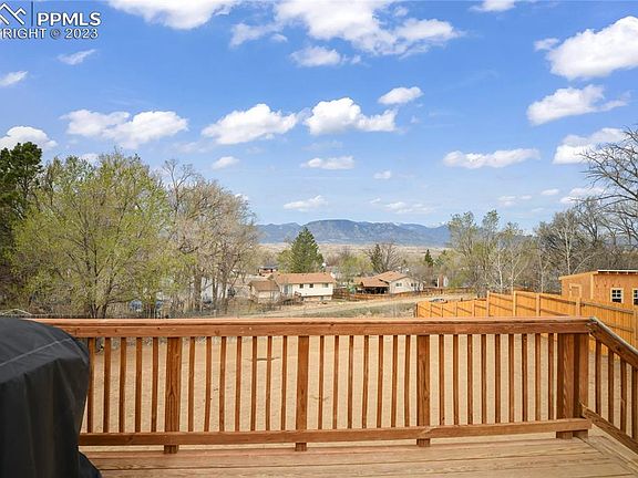 Views, views, views! This home is a must see. 3 bedrooms and an office that can easily be used as another bedroom, large living and family rooms, walk-out dining area, 2 bathrooms, 1 car attached garage and RV or boat parking area. Central air and ceiling fans. Expansive rear deck with picturesque view of Pikes Peak. The huge back yard is the perfect oasis ready for cookouts, entertaining, pet or children play and exercise area. Convenient location in mature, quiet neighborhood close to shopping, entertainment and recreational activity. Value, view, location, this home has it all!!