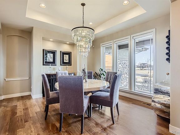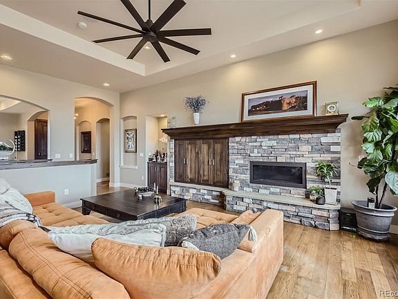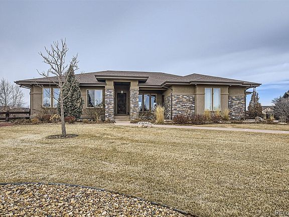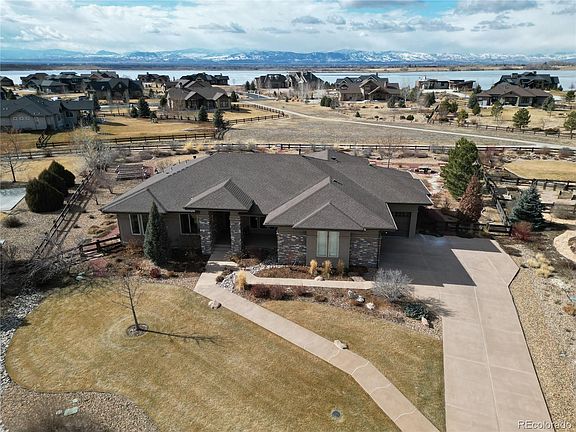 Experience breathtaking views of the Colorado mountains and Timnath Reservoir from this stunning ranch home on a .81-acre flat lot. The property features professional landscaping, including planter boxes and a water feature, along with a built-in horseshoe pit. Enjoy direct access to open space and trails.