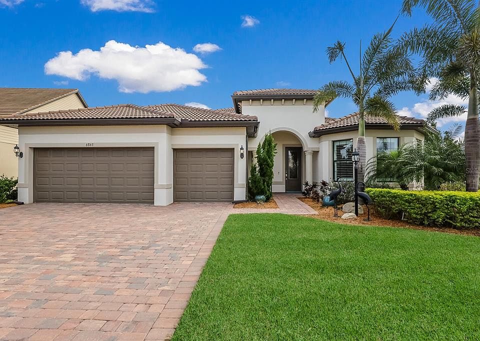 YOUR DREAM HOME AWAITS! Enjoy the best of Florida living in the exclusive gated village of Del Webb at Lakewood Ranch. This 4-year executive-style home is perfectly positioned on a beautiful preserve/pond view lot. This homesite allows you to enjoy nightly Florida evenings in your pool or a glass wine on your Travertine lanai. Why wait to build when this stunning highly sought-after "Pinnacle" model could be yours now. Del Webb of Lakewood Ranch is a highly desirable resort style 55+ community with lots of amenities. As the most popular model, the "Pinnacle" is an open concept spacious home with 3 bedrooms, 3 full baths PLUS den with a 3-car garage. The owners spared no expenses by going all out with plenty of upgrades that includes saltwater self cleaning Pebble Tec pool with water feature, impact windows, whole house Generac generator, outdoor kitchen with Delta gas grill and rotisserie, kitchen package that includes built-in stainless-steel appliances, custom stainless farmhouse kitchen sink, 42" cabinets, gorgeous quartz countertops, backsplash, all very nicely coordinated. The home has a gas cooktop, reverse osmosis system, over-sized breakfast island, crown molding, walk-in shower, ceiling fans, tankless water heater, cabinets and sink in laundry room and the list goes on. Come see for yourself! The amenities are limitless and if you are looking for resort-style living, this home is for you! This is a MUST-SEE home to appreciate everything it has to offer. Del Webb is conveniently located near UTC mall, golf courses, theaters, restaurants, hospitals, and world-famous beaches. Del Webb is maintenance-free, resort-style living with a 28,000 sq. ft. Lakeside Clubhouse with restaurant, heated resort-style pool and spa, world-class gym, plenty of walking and biking trails, or just warm yourself by the fire overlooking the main lake. Del Webb is a master planned community designed for those who want to stay active and socialize with your neighbors. CDD fees included in property taxes. SOME FURNISHINGS OPTIONAL UNDER SEPARATE PURCHASE AGREEMENT. Room Feature: Linen Closet In Bath (Primary Bedroom).