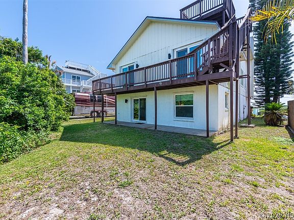 This is not your average Bethune Beach house. Situated on an over-sized 75 ft wide lot located on one of the quietest roads on the barrier island, this remodeled home features incredible river views to the West and ocean views from the rooftop deck. Updates to this home include; new roof(2022), new electrical panel(2022), all new windows and doors (2018), and new exterior LED lighting (2018). This property includes a new separate driveway (2019) large enough to park your recreational vehicle or boat that has been reinforced for up to 50k pounds with on-site electricity. The first floor of this amazing home features an over-sized 2 car garage and a downstairs living quarters with separate kitchen, living room, bedroom and bathroom. The main living area on the 2nd floor has a fireplace and is very open and great for entertaining. The wrap around balcony boasts gorgeous river views and is large enough to hold multiple different seating areas. There is a 3rd floor loft which can be used for any number of things and features even more storage space with two over-sized closets. Both kitchens and all three bathrooms have been recently updated with high end appliances, fixtures and counter-tops. Enjoy the rocket launches, ocean waves and expansive river sunset views from the rooftop deck. Located less than half a mile to Canaveral Seashore Park this location is ideal if you want tranquility and that beach lifestyle.