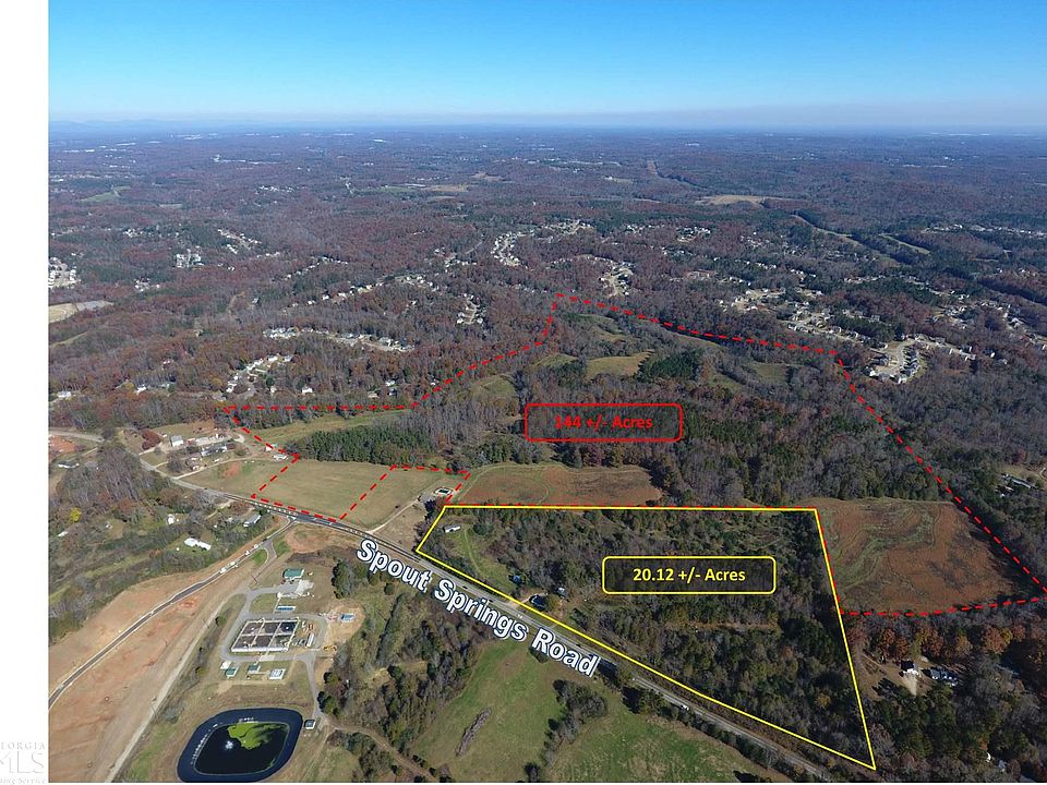 This mostly level to gently rolling 20.12 +/- acre tract is extremely well-positioned as an assemblage with the adjacent 144 +/- AC tract. That tract is one of the largest most desirable residential tracts left in southern Hall County. The property boasts ample road frontage with roughly 1,500' on Spout Springs Road allowing for an excellent front door to establish a standout community in an ultra desirable and convenient location. All utilities available including public water and sewer. This offering is right across the street from the new Hall County sewer plant.Located in the hottest residential growth market in Hall County and a short walk to the #2 selling subdivision in all of Georgia, Sterling on the Lake.
