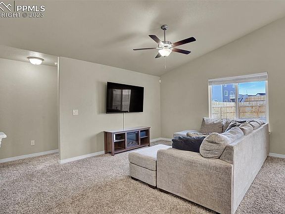 A much newer home recently built in a unique part of Lorson Ranch with NO immediate back yard neighbors! From the larger lot that is fully landscaped to the homes beautiful exterior composed of fiber cement and stone siding that will hold up against the harshest of elements. As you walk through the front door, new LVP flooring will greet your feet! Continue into the home and check out the large bedroom and full bath immediately to the front of house. Continue into the family room that features a vaulted ceiling with a fan and flows seamlessly into the dining area that has views from the backyard and kitchen. Continue into the kitchen that is the on the main level, boasting newer stainless steel appliances, a large island with a granite countertop system, tons of storage space and overhead recessed lighting! Head outside to the concrete patio and backyard that features no neighbors to the rear and opens up to the neighborhood's green space/walking trails, a true extension to your backyard, and tons of room for everyone to play! Head back inside to check out the master bedroom with vaulted ceilings and you will also find a robust master bathroom featuring a FIVE piece master bath with an enormous master closet! Go down to the basement and see a large utility room with more than a sufficient amount of storage sharing space with a newer furnace and water heater. The large basement also has two large bedrooms with walk in closets, and yes, another full bathroom with a large than life second living room! The basement is fully carpeted for those cozy family movie nights! With inventory getting lower every month in our market we do not expect this to last! Please schedule your showing today. Enjoy!!