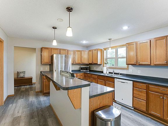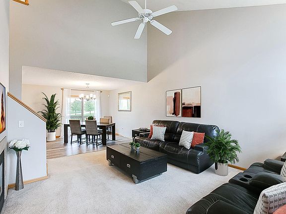 Introducing the highly desired, Mississippi Dunes neighborhood, 3 bedroom, 3 bath townhouse. This thoughtfully designed townhome feels like a single family with a no maintenance exterior, and an abundance of windows front and back, allow tons of natural light, a private deck with green space and no direct neighbors! The main floor boasts soaring vaults, a cozy living room gas fireplace, a trendy designed kitchen and breakfast bar, mudroom and powder room for convenience. Three bedrooms all upstairs, including a spacious primary suite, primary bath with separate tub/shower and walkin closet, all this AND an Unfinished basement with bath rough-in for instant equity and endless possibilities!! Great schools and conveniently located. Take the first step towards your dream lifestyle. Don't wait on this one!
