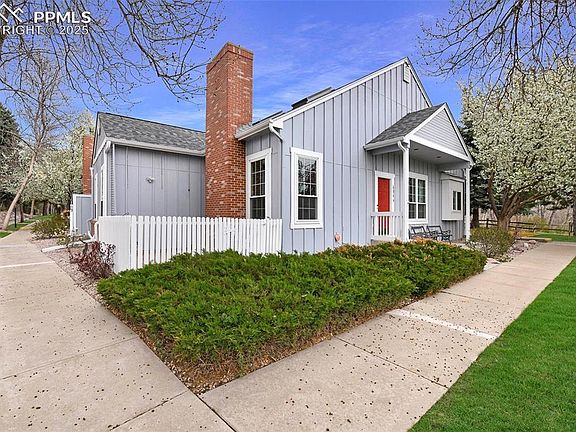 Main-level living on the beautiful banks of Cottonwood Creek! This rare end unit faces a park-like setting and is located in the desirable School District 20! Just minutes from the USAFA south gate, the Shops at Briargate, I-25, Shopping, and Entertainment. This townhouse features three bedrooms, three bathrooms, a two-car garage, and two patios —one of which is gated! Two bedrooms are on the main level, along with two bathrooms. The living room is light and bright, with skylights and a cozy gas fireplace. The kitchen has a fantastic view of the creek! The pantry and laundry are located off the kitchen, and there is an entry to the garage. The washer and dryer are included—the dining area is off the kitchen. The basement consists of a huge recreation room, a bedroom with a walk-in closet, and a 3/4 bath. There are four newer skylights. The main level has beautiful bamboo flooring, and the basement has newer carpet. The kitchen and primary bath were recently renovated. The roof was replaced last year. No extra pool fees! Tons of storage - a crawl space, utility room, and plenty of closets. Water, trash removal, yard maintenance, and snow removal are included. A clubhouse is available to rent on an as-needed basis, perfect for your gatherings! Heated outdoor pool! The trees are in bloom, and this charmer is ready for move-in and waiting to welcome you home!