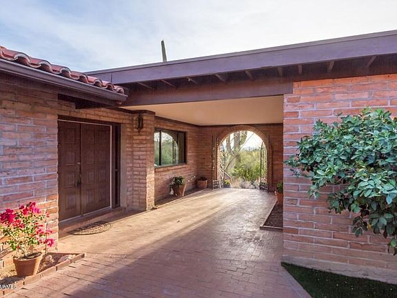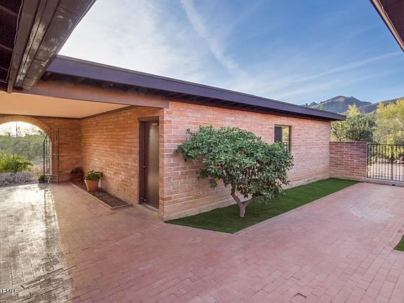Outstanding desert, mountain & city views abound from this Burnt adobe home nestled in the Foothills. Home sits on a large 1.39 acre lot w/abundant Saguaro & natural desert landscaping. Enter the home through the gated courtyard entry & private courtyard. Owner has added upgrades w/Newer dual-pane windows & glass sliding doors & newer light fixtures. Brick floors are throughout the home. Floorplan offers living area w/pass through fireplace, formal dining area & family room w/beehive fireplace off of kitchen. Kitchen has tile counter tops, refinished cabinets & newer appliances. Master bedroom is large w/shower/tub in master bathroom. Guest bedrooms have California closet built-ins. Bathrooms have been updated. Archways & wood beamed ceilings are a few additional touches that...