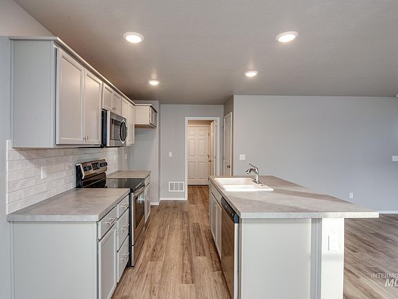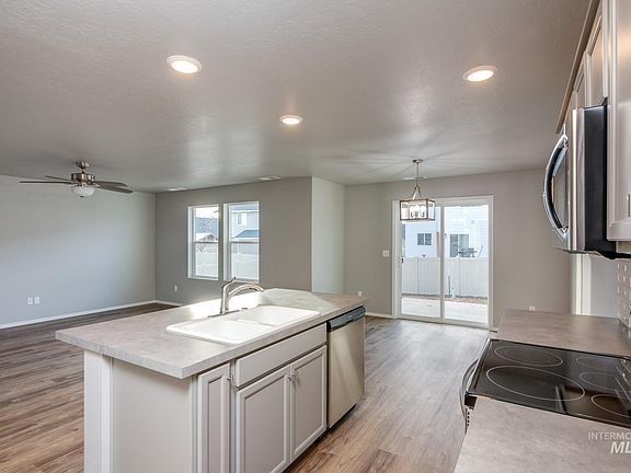 This new home located in beautiful Kuna, Idaho has all the comforts you need & more! Welcome home to the timeless Poe 1471! Here you'll enjoy a thoughtfully laid out living space with an open concept main level and all three bedrooms tucked upstairs. The kitchen island overlooks the living area so you can host guests while staying at the center of the action. Easily slip outside for some fresh air on the back patio off the dining room. Retreat upstairs where the primary suite and two other bedrooms await. Photos are similar. All selections are subject to change without notice, please call to verify.