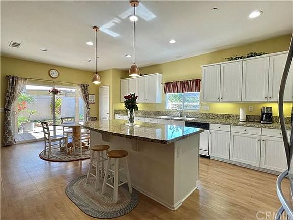 Beautiful single story home located in city of Eastvale. 4 bedrooms and 3 bathrooms. Open floor plan with upgrade white cabinets and Granite counter tops in the kitchen. Oversized island with additional seating. All bedrooms have ceiling Fans. Close to School, Shopping Center and Eastvale community center. Fire place in Family room. 7 different fruit trees. Above ground jacuzzi in the backyard. One storage room in the side yard. Tandem 3 car garage.