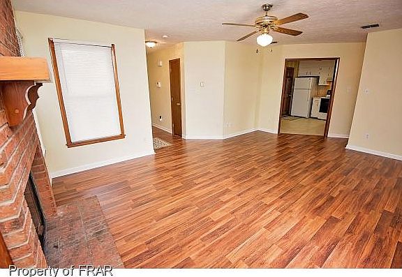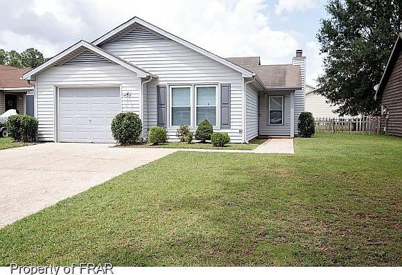 Very cute 3 bed/2 bath ranch vinyl home close to Ft. Bragg. Interior is freshly painted with new carpet and laminate flooring. Great room has wood-burning fireplace. Eat-in Kitchen has lots of storage. Fenced in backyard and one car garage. One year home warranty. Roof replaced August 2016.