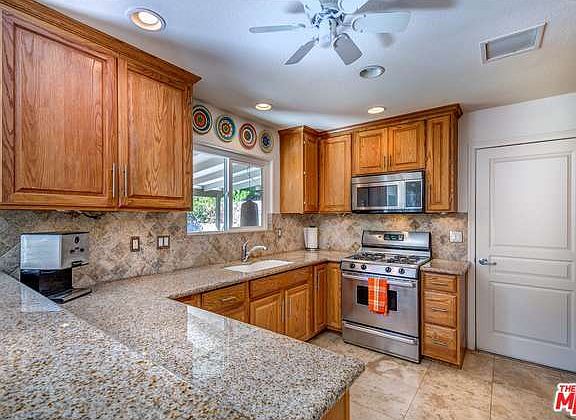 Updated & Move-in Ready!!! Fully renovated in 2007 with new windows, HVAC, electrical, plumbing and roof! Kitchen has been updated with cabinets, granite counters, newer appliances, travertine floors and lighting. Both bathrooms have a "spa-like" feel with updated cabinets, granite counters, jetted tubs, travertine floors and lighting. Master has been expanded and is now a Retreat, with access to backyard, patio and pool! Saline pool with pebble tech finish. Fruit bearing citrus grove in fenced, south facing backyard. Attached 2 car garage with evaporative cooling system.