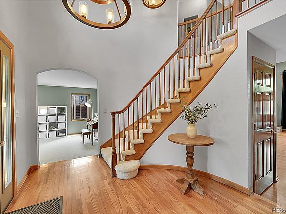 Welcome to your dream home nestled in the heart of Arvada, where charm meets modern luxury! This meticulously renovated gem boasts an unparalleled blend of sophistication and comfort, offering an oasis of tranquility in a prime location. Located near summer outdoor concerts and theater at the Arvada Center and Old Town Arvada boasting a diverse array of shops, boutiques, galleries, events, restaurants, breweries and a winery, Olde Town has all of the amenities of a thriving urban hub set within a turn-of-the-century Main Street Americana ambiance. Houses of this size with no through traffic are exceedingly rare in central Arvada. Step inside to renovated baths and kitchen, where every detail has been carefully curated. The gourmet kitchen is a culinary masterpiece, featuring high-end appliances, sleek countertops, and ample storage space. Indulge in the ultimate relaxation experience in the hot tub, nestled in the expansive backyard oasis. The jellyfish lighting allows for easy custom year round visual accents for any season. Enjoy the heated garage, ensuring comfort during the coldest winters. Solar panels provide eco-friendly energy solutions, while new windows flood the home with natural light. Entertain in style in the spacious living areas, highlighted by soaring 20' vaulted ceilings that create an airy atmosphere. The finished basement is a true entertainer's delight, complete with a projection TV, full bar featuring a refrigerator and ice machine, and a workout area for fitness enthusiasts. Escape to your own private retreat in the master suite, boasting a luxurious updated en-suite bath and ample closet space. Four additional bedrooms offer plenty of room for family and guests. Relish in outdoor living at its finest on the expansive deck with a pergola, overlooking the lush backyard sanctuary. Situated on a quiet cul-de-sac and adjacent to open space, this home offers unparalleled privacy and serenity. https://v1tours.com/listing/46950