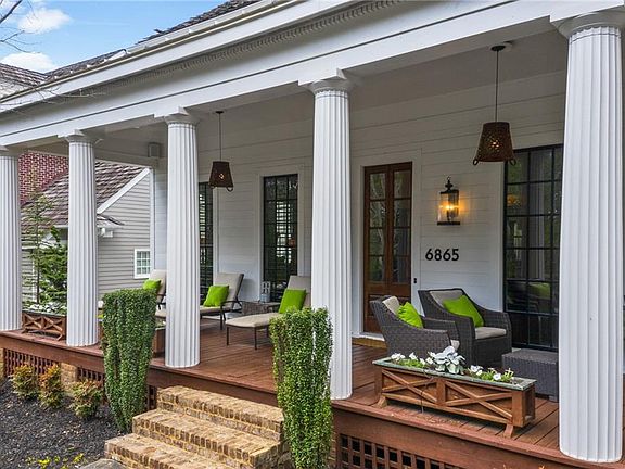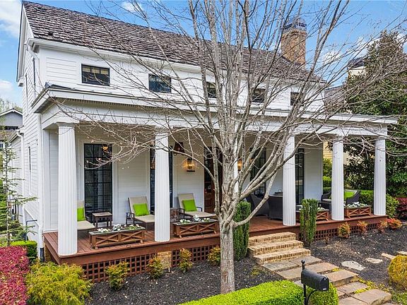 This Master on Main is one of Hedgewood's finest on the best street in Vickery! ALL bedrooms have en-suite baths. Beauty is in the artisan details - historic charm w/ deep front porch and fluted columns, custom wood front door, floor to ceiling paned windows, curated light fixtures, rich, wide plank pine floors, herringbone in-lay tile in foyer ceiling, one-of-a-kind baseboards, brick flooring + built-in office in interior breezeway, plantation shutters. Kitchen w custom cabinetry, Viking appliances, walk-in & butler's pantry. Elegant dining room w/ fireplace. Generous courtyard with plenty of room for outdoor entertaining and features a formal koi pond. Upstairs offers 3 bedrooms and a living area. Oversized 2 car garage + covered and gated 3rd space. Front of house overlooks park. Hardwoods newly refinished, new carpet and synthetic turf area in back courtyard. Enjoy Vickery's award-winning live-work-play neighborhood...truly the heart of the West Forsyth community. Walk to schools, shopping, restaurants, YMCA, Big Creek Greenway, Polo Golf & Country Club and much, much more! Be sure to check out the virtual tour!