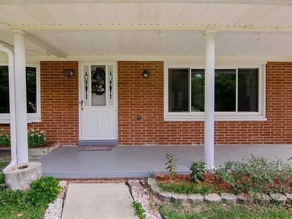 Charming, clean raised ranch home with opportunity to add your own personal touches. Covered front porch overlooks picturesque yard with a stream. Home boasts cove ceilings, hardwood floors, and generous living room with bay window overlooking beautiful scenery. Kitchen and dining area open to three seasons room with scenic views of the backyard. Basement boasts large rec room and family room with bar for entertaining. Garage is spacious and extra outbuilding for storage. Improvements include furnace (2015), water softener (2015), AC (2015), Stove (2016), Oven (2017). City water and natural gas available at the street. The home is located on a scenic 3 acres with stream and mature trees. The asphalt driveway with a parking area, leads past a large pole barn towards the house. The metal pole barn boasts new roof (2017) and a large door to accommodate tractor, trailer, boat, or RV.