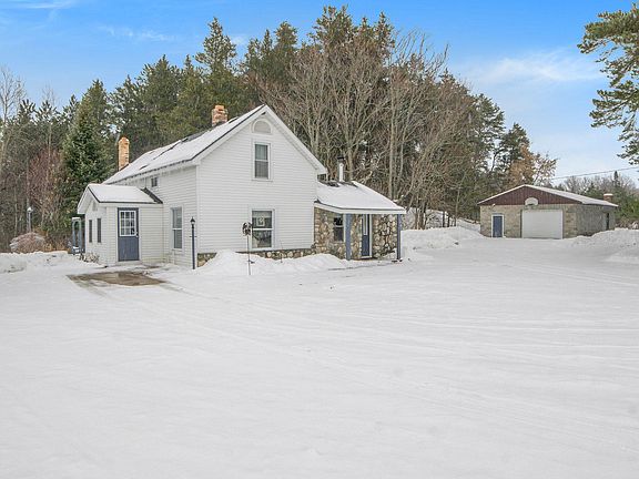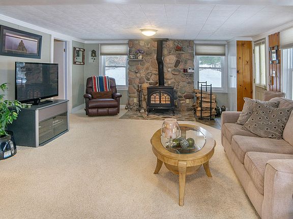Very bright and cheery home with amazing stone work around the wood stove and on the exterior as well. The crackling wood stove is comforting during the cold winter days and this house is immaculate! Also offering a large brick patio great for entertaining and it is overlooking the 7+ acre property. The detached garage is 28x44 with two garage doors has lots of space for your toys. The main floor master with attached bathroom is great and the entire house is very spacious with large bedrooms and large living space and kitchen.
