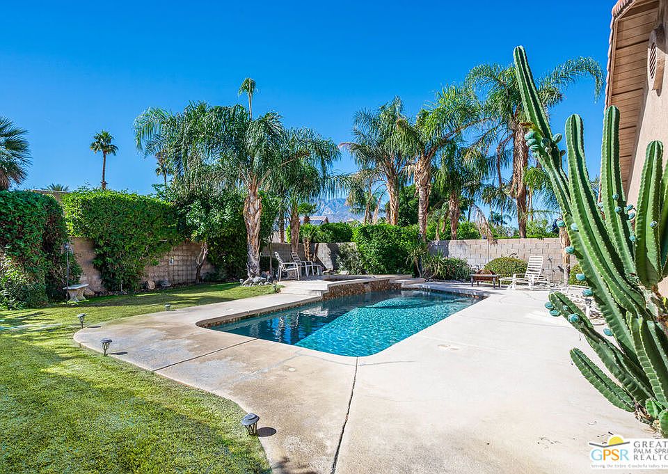 Ideally situated in Cathedral City's sought-after Panorama neighborhood, this home presents a rare opportunity to enjoy resort-style living at a incredible value price. This 1,971 sqft residence features three spacious bedrooms and two bathrooms, thoughtfully designed for comfort and functionality. The inviting sunken living room creates a warm, conversational atmosphere, while large windows invite soft natural light. The kitchen and living spaces flow seamlessly for easy entertaining. Step outside to a private backyard oasis with peek-a-boo mountain views and a saltwater PebbleTec pool and spa, perfect for enjoying the desert sunshine. Recent upgrades include a newer A/C (2020) and hot water heater, adding peace of mind to its timeless appeal. A two-car garage provides ample storage and convenience.