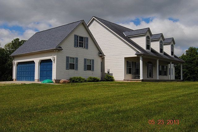 "Over 6000 sq ft of beautifully finished living space on 23 acres, approx 3-4 wooded. 1st flr master suite w/walk in closet, cathedral ceilings, master bath w/his/her vanity & huge tile shower. Home office on main floor along w/main flr laundry & 3-car garage. 30'cathedral ceiling in Great Room. Also offers fully finished lower level family room, huge finished ""bonus"" room for games & more. 2-new geo-thermal heating cooling systems & Delco water. Short Sale, see A2A remarks. "