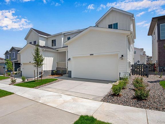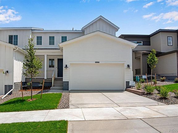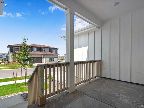 This beautiful new paired home offers an open floor plan with a finished basement featuring an additional bedroom and full bathroom. Both the kitchen and primary suite offer light quartz countertops with contrasting dark grey cabinetry. Relax by the gas fireplace in the great room or enjoy the outdoors on your covered back patio. Situated in the heart of Castle Pines, The Canyons merges new homes with nature by restoring the native landscape and upholding an etic of preservation. Almost one-third of the community is dedicated to outdoor space in the form of parks, 15 miles of trails, and open space. Gather with family and neighbors at The Exchange for coffee and events or take advantage of the amenities at Canyon House with a resort-style pool and spa, fitness center, patio with firepits, and pickleball courts. Community events abound with a monthly music series and larger holiday festivals.
