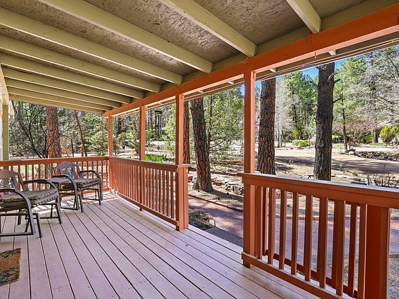 Whether you're looking to relocate to the peaceful mountains or get your dream vacation/weekend getaway, this home has it all!. When you enter this home you will notice the large open floor plan. From the living room that opens up into the kitchen with an island, pantry and enough room for gathering friends and family to the wonderful Family room with a fireplace, this home is just amazing. The split floor plan makes it really nice for added privacy. The master bedroom flows into the extra large bathroom with a large updated walk in shower. There is also a separate laundry room with cabinets. Outside you will notice the Arizona Room that leads out onto the deck with views of mature pines for that wonderful cabin in the woods feel. There is a separate shed for added storage, a snow rated RV carport and a hard to find 2 car garage with a added storage room inside. All this and just minutes from the National Forest.