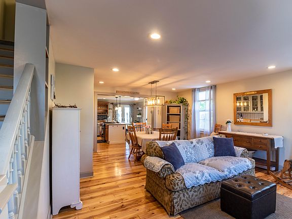 A beautiful blend of modernity with original charm will lure you to fall in love with this 4-5 bedroom, 2.5 bath farmhouse charmer that will meet your every need. Easy flow kitchen with large island for mealprep and easy dining, adjoins the open dining room w/built-in hutch and living room w/pellet stove. French Doors lead to the generously-sized family room w/window seats, woodburning