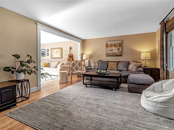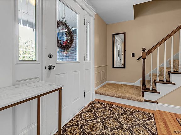 Enjoy all suburban amenities with rural ambiance! Beautiful inside & out, this 4BR home in Pendleton sits at the end of a quiet street where you can relax on your acre of land, & still be minutes from the 990 & Transit Rd. shopping! This house “lives” much larger than its size, with no wasted space. The renovated kitchen offers SS appliances, glass front cabinets, tile backsplash, & gleaming hardwood floors which extend into the dining room and front room. The family room has great TV viewing and a wood-burning fireplace for winter nights. The spacious backyard has great shade trees, a screened-in porch, deck space when you want some sun, & two big storage sheds. Or, enjoy your morning coffee on the covered front porch. Upstairs are 4 BR w/a full master bath & second full bath. Hardwood floors in all bedrooms, & the hallway carpet feels great under your feet . Nice touches everywhere, including interior door trim, large foyer closet, & a great paint job. Clean, dry basement & new HWT, newer 2.5 garage. Open house Sat, Sep 17, 1-4. Offers will be due on Wed Sep 21 at 3 pm. Seller requests highest & best offer, no escalation clauses.