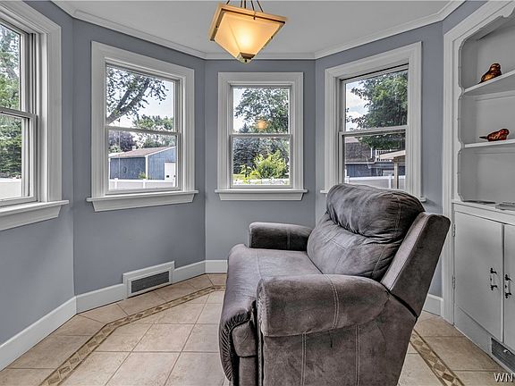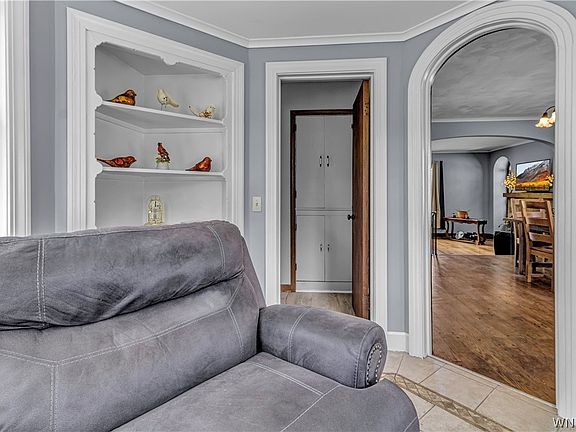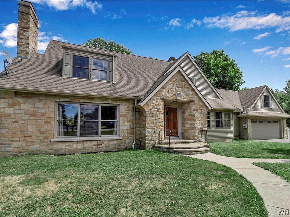 Wonderfully maintained two story home on a 1 acre lot in Hamburg Schools. The front door leads to a large sunken living room with a pellet stove and oak hardwood floors adjacent to a formal dining room. Through an original rounded doorway is the cutest breakfast nook you have ever seen. Generous sized kitchen has new luxury vinyl flooring ('22), oak cabinets and black appliances. There is an updated full bath with glass shower and tasteful fixtures. To wrap up the 1st floor is a bedroom that has access to the 2 car attached garage and rear covered stamped concrete patio. A wonderful bonus room on the front of the house with tons of windows could be used as a sunroom, office or additional bedroom. Original wrought iron railings flank the stairs to the 2nd floor which has 2 large bedrooms and a full bathroom. The unfinished space above the garage provides plenty of potential for more finished space. Basement has epoxy floors and a finished bonus room with a WBFP. Rear yard is fully fenced with additional yard space behind the fence. 200amp electric service ('19), Pella windows ('06), roof ('06), High E furnace ('15), whole house water filter. 2022-08-05