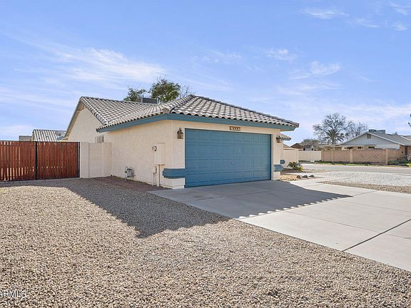 Beautiful corner lot home in a prime location. NO HOA, with an RV Gate and a pad for parking. This Beautifully updated Home is sharp & clean with new paint inside & new carpet throughout. Neutral tile in all the right places. Updated primary bath with a beautiful large shower and dual vanity. Very versatile floorplan with a large formal living/Dining room, The kitchen with newer ss appliances is spacious with an island which opens to the family room. Outside you will love the extended covered patio with a built in BBQ. Enjoy fresh orange juice from your mature orange tree or create a garden in the ready made planters with drip lines. Very rare for one of these homes to come on the market. Close proximity to Westgate, Arrowhead mall and much more entertainment. This meticulously maintained home has been owned by the same owner since 2000. A newer AC system. The AC was replaced in 2022. Your chance to store your RV, BOAT or Trailer at your own home, since there is no HOA.