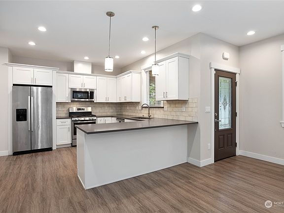 One-story condominium located between Lynden and Bellingham. Open floor plan with quartz countertops and tile backsplash. Cabinets feature soft-close drawers. Stainless appliances. Natural gas fireplace in the great room. Large primary with walk-in closet and tile shower. The office could be a 3rd bedroom. A high-efficiency furnace with central Air conditioning. Tankless water heater. Pole Road Water Association. Conveniently located near shops, restaurants, gyms, and Raspberry Ridge Golf Course.