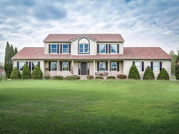 Stunning Open Floor Plan featuring 4 bedrooms, 3 full baths, nearly 3,000 sq. ft with over 5 acres. Enjoy the large covered front porch with peaceful scenic views - step inside the front door to the 2 story foyer with gorgeous hardwood floors throughout the dining room & kitchen which opens to the 2 story great room with an abundance of light & amazing views. On the first floor you will also find french doors leading to the den/office, 1st floor Owner's Suite, 2 full baths & laundry. Upstairs features 3 spacious bedrooms, loft overlooking the GR & a full bathroom. Outside you will find a large deck overlooking the ~2.5 acres of fenced pasture, beautiful stocked pond with scenic views of the woods, attached side load 2 car garage + 4 car outbuilding too. Amazing property close to everything