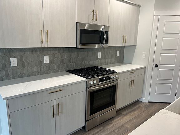 Enter into a brand new home in Meridian, Idaho. The dedicated entryway welcomes you to the main level where you will find a bedroom, half bath, and a phenomenal great room. 9ft ceilings and scores of windows throughout the main level let the fresh air in! The kitchen boasts upgraded finishes, including stainless steel appliances, a gas range, and stylish solid surface countertops. The adjacent living and dining rooms ensure that no one misses a moment of the action. Explore the upstairs to enjoy the flexible loft space or unwind in the other 3 bedrooms. The primary suite beckons with its en suite bath, dual vanities, and separate soaker tub. An additional tandem bay in the attached garage is rife with the potential to maximize storage space, park an additional vehicle, or create a home gym. 3 car wide garage with double to triple deep in the center of garage. 4 to 5 car garage.