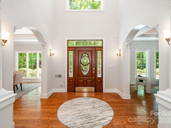 Truly a Hidden Gem! Welcome to this custom-built home nestled on 3 private acres in the desirable Matthews area, just 15 minutes from Uptown Charlotte. Located on a quiet street with a gated driveway, this home blends luxury, privacy, and convenience. The main level features an open-concept design with soaring vaulted ceilings, a spacious great room, and a formal dining area, perfect for both everyday living and entertaining. Fresh interior paint throughout adds a bright, modern touch. The oversized kitchen is a chef’s dream with granite countertops, a huge island, plus a walk-in pantry. The main level primary suite is a retreat, with a spa-inspired walk-in shower. Outside, relax in your own private oasis with mature trees, a hot tub, and outdoor shower. Additional highlights include a 3-car garage with shop area. Whether you're drawn to the peace and quiet of 3 acres, the convenience of a short commute, or the custom-built touches throughout, this one checks every box, don't miss it.