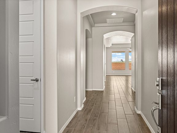 Charming 2022-built 3-bed, 2.5-bath home near top-rated New Mexico schools and shopping. Features high ceilings, an open-concept layout, and a chef's kitchen with a large island (seats 4), stainless steel farmhouse sink, premium appliances, and elegant tile backsplash. Tile flooring flows throughout, with carpeted bedrooms. . Prime Location: Minutes from parks, dining, shopping, and highways. Spacious Interior: Open-concept layout with 10-ft ceilings and large floor-to-ceiling windows for ample natural light. Gourmet Kitchen: 8-ft island (seats 4), stainless steel farmhouse sink, double oven, dishwasher, walk-in pantry, subway tile backsplash. Flooring: Wood like tiles in main areas, plush carpet in bedrooms. Primary Suite: Walk-in closet with XL shelving, and walk in shower Additional Rooms: 2 sizable bedrooms, full bathroom, convenient half-bath, dedicated laundry with washer/dryer. Outdoor Space: Low-maintenance backyard with covered patio.. Garage: 2-car with built-in storage. Utilities: Tenant pays electricity, water, gas, internet/cable. High-speed internet/cable-ready, central AC/heating. Restrictions: HOA rules apply; Schedule a showing today! Tenants Responsibility: Water, Electricity, Gas and Trash. Deposit at signing.