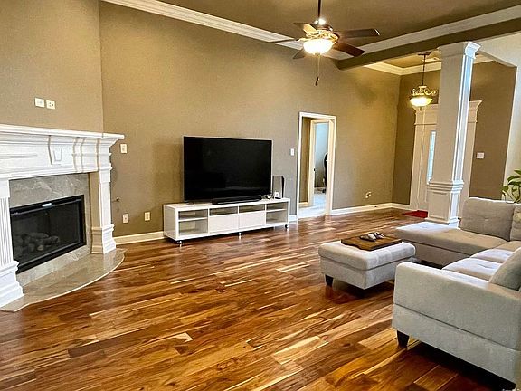 For Sale by owner , seller agrees to pay 3% to buyers agent !! Gorgeous home tucked in a wooded setting. This 3BR/2BA one level home has magnificent crown molding throughout, soaring ceilings, 3 fireplaces, spacious kitchen w/granite counter tops and ss appliances. The great room features beautiful hardwoods and fireplace. The master bedroom suite has a trey ceiling, french doors open to a fabulous master bath w/stone fireplace and detail galore. Private backyard w/covered patio and fireplace looks out over green space. Energy efficient for low utilities. Beautiful fully functional 160 sq. Ft. back house with heating and air suitable for a man cave , game room , climate controlled storage , or maybe even a guess house for company the options are endless.