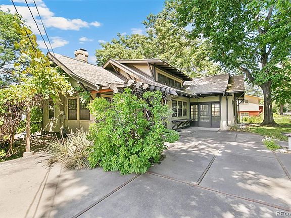 This stately California-style Craftsman Bungalow is ready to be your dream home! Bungalow lovers will be captivated by the street presence of this true vintage delight. Situated in one of the best locations in Wheat Ridge, this is truly a once-in-a-lifetime opportunity! The welcoming front porch looks onto your lush front lawn, dappled by the shade of mature trees. Upon entry, you are greeted by an expansive living room and dining room with rich oak floors, a fireplace, high ceilings, and walls of windows that allow you to enjoy views of your grounds. The sunlit and enclosed front porch is the perfect place for your morning coffee or evening glass of wine. An office off of the entry features French doors leading out to a charming porch with a grape arbor. Prepare your family recipes and create new ones of your own in the fully functional 1950s kitchen, complete with ample storage space and large windows that look out onto the backyard. The east bedroom has a picturesque bay window and a walk-in cedar closet. The second main-floor bedroom also offers a walk-in closet. A full bath on the main floor features terrazzo flooring. Upstairs, you will find a bonus living area and tremendous storage space. Downstairs to the finished basement with a private entry—this was used as a basement apartment offering one bedroom, a full bathroom, a kitchen, and a large living area. Perfect for multi-generational living or rental income potential! The grounds are serene, graced with mature trees throughout the lot, a flagstone patio, a grassy lawn, ample parking, and a circular drive wrapping around the back of the home. Bonus dog run and an oversized one-car garage for even more storage space! Top-tier location, close to shops and restaurants along 38th Avenue and mere moments from Highlands Square. Unique and architecturally significant home with plenty of sweat equity to be found—Capture this vintage gem and make it into your dream home!