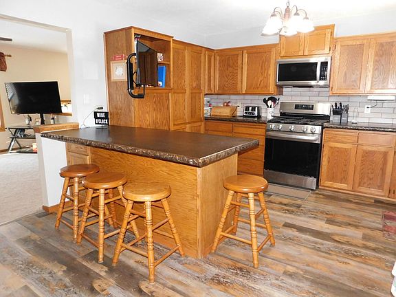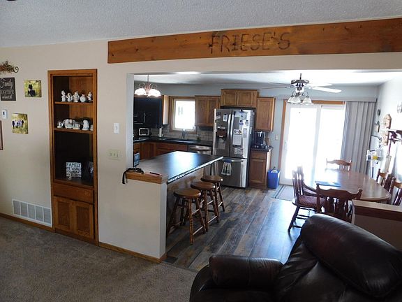 Step into the new foyer, added in 2013 to the home which has in-floor heat and large closet. Main floor has an open concept living space, large u shape kitchen updated with concrete countertops and new flooring. Stainless steel appliances stay with the home. Both bathrooms have been updated & have tiled showers. Large family room is great for movie night. Good storage though out, notice the built in display/book shelf and extras in the kitchen cabinets. New furnace and A/C installed in 2019. Attached garage is insulated, has extra storage above & propane heater. Dog kennel is negotiable. Home is dog friendly.